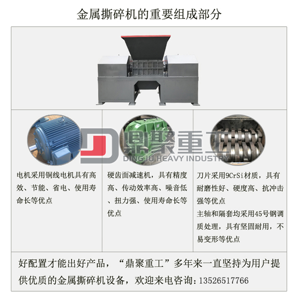 金屬撕碎機(jī)是一款用于對(duì)廢舊金屬進(jìn)行粗破的機(jī)械設(shè)備,可以對(duì)汽車(chē)殼、摩托車(chē)、自行車(chē)、彩鋼瓦、油桶、鋼筋、鋼絞線(xiàn)、金屬壓塊、鐵皮、角鐵、槽鋼等金屬物料進(jìn)行撕碎,具有撕碎力度大,產(chǎn)量高,噪音小等優(yōu)點(diǎn)。